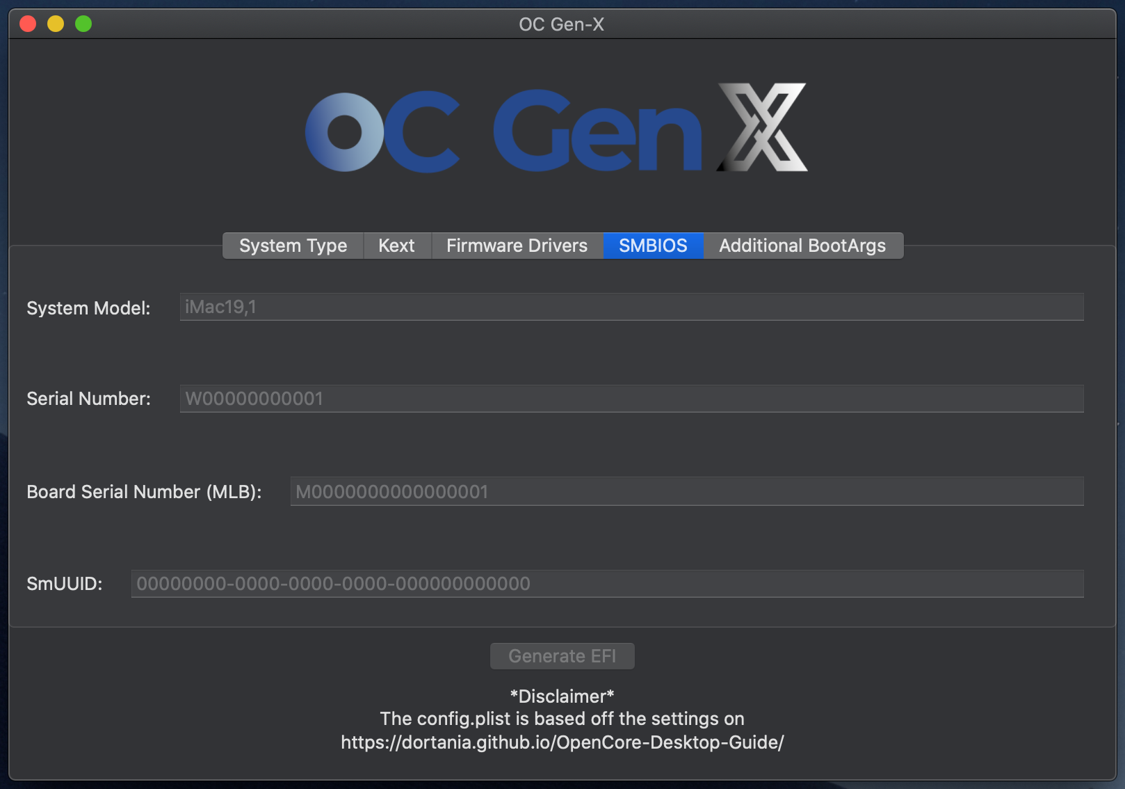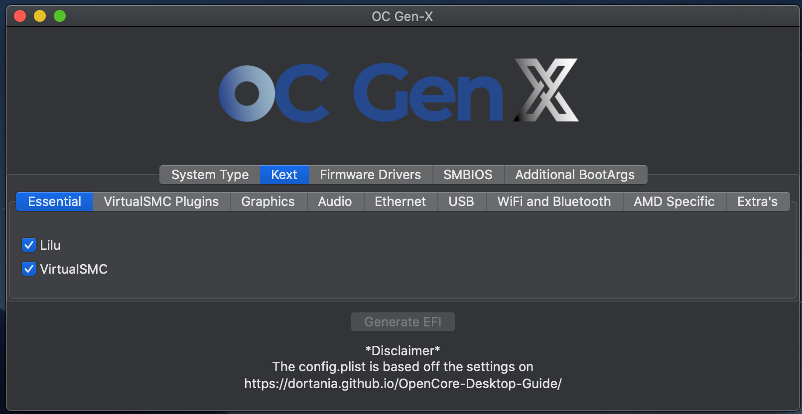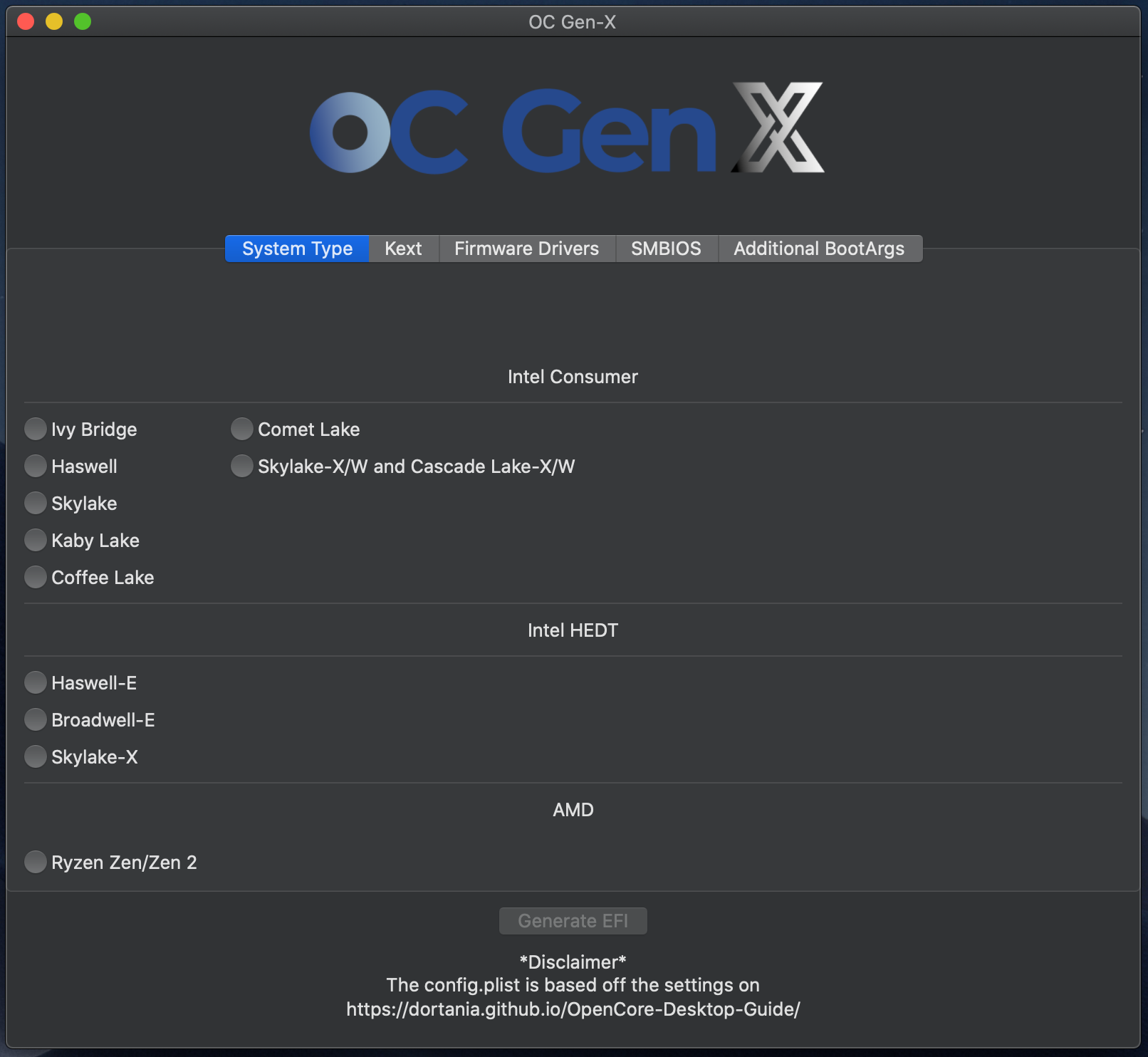 Opencore Generation X is a Utility to create a pre-structured EFI Folder to the Desktop Based on the selection of the user.