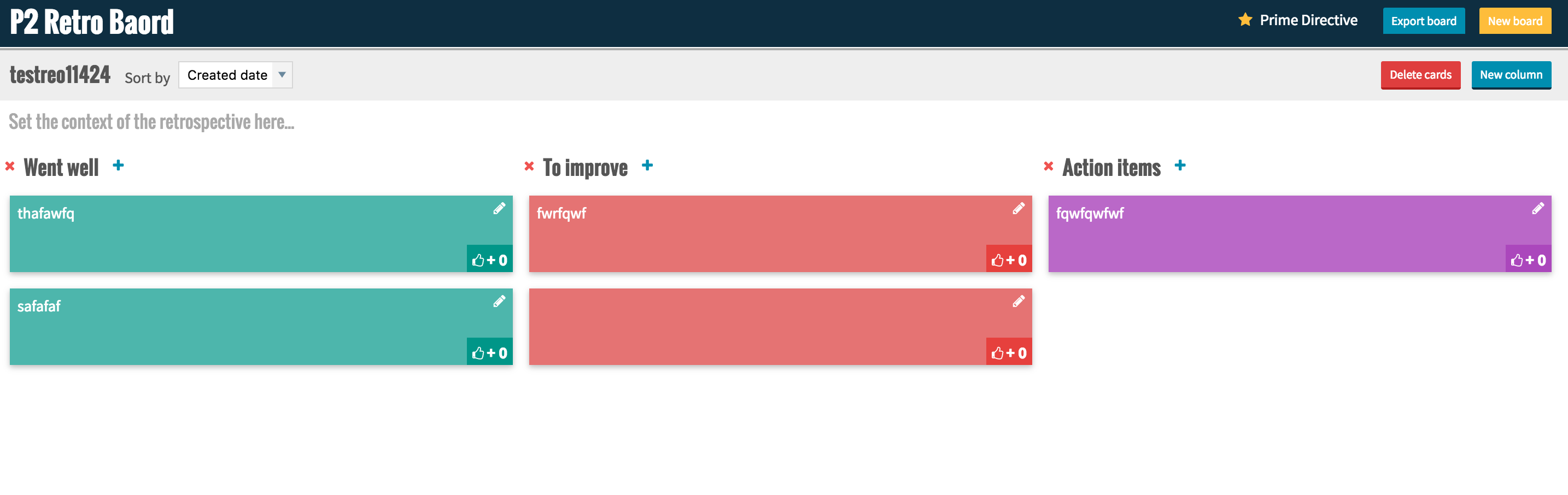 P2's protoype of an easy to use use and beautiful restrospective board based on the work of [funretrospectives(https://github.com/funretro/distributed)