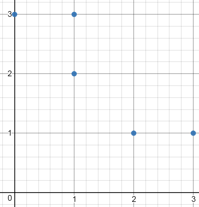 Input: [[3,1],[1,1],[0,1],[2,1],[3,3],[3,2],[0,2],[2,3]]