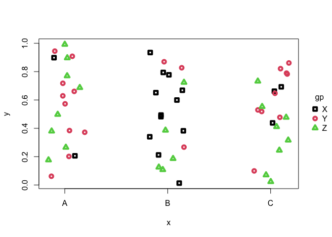 Fixes #319. Looking at the issue I posted earlier, it appears that the jitter plot is internally referenced as "p" type. While my knowledge of this codebase is next to nothing, I don't believe there should be unintended consequences of this change because "p" should only include points. The changes allow for the legend to pick up the