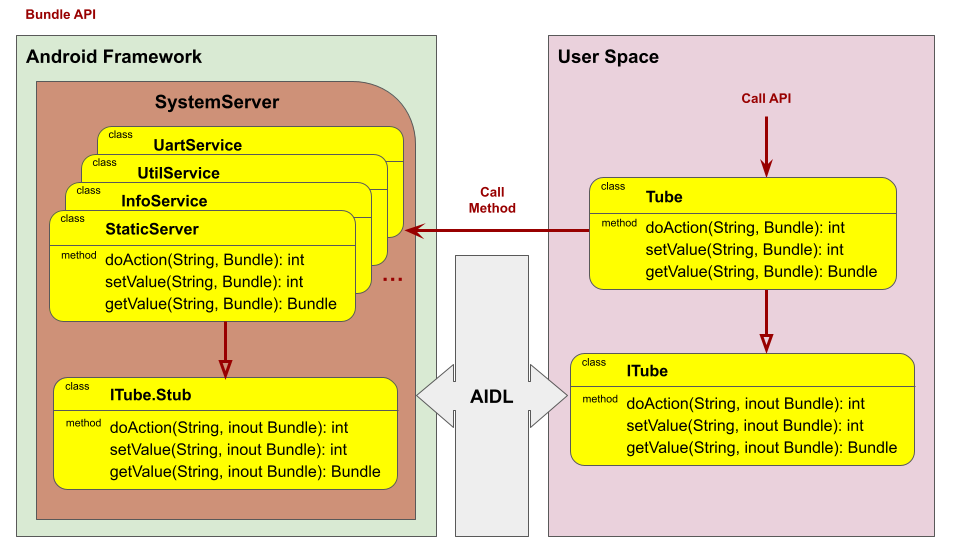 - AOSP에 이미 구현된 기능을 활용해 API 호출 시 넘기는 Parameter 와 Return 값을 Bundle 객체를 사용하여 타입을 단일화 함