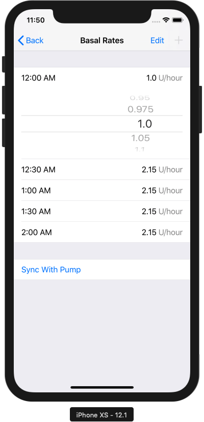 A new basal schedule editor using a UIPickerView for modifying entries. Constrains user input to specified value and time increments, and prevents creation of invalid schedules. Also expected to help prevent decimal place errors. Back button is renamed "cancel" when changes are unsynced.